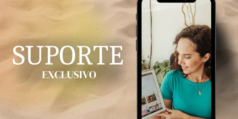 Suporte direto comigo pelo whatsapp , você nunca está sozinha, estarei pegando na sua mão para seguir nesta jornada incrível!